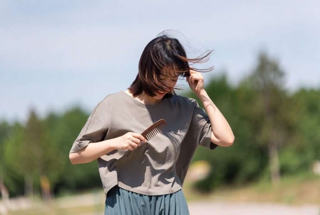 One such item can be a tiny hairbrush or a comb. Movement of wind, heat, and traveling can have an impact on hair, and having something small at hand can make hair feel more manageable in a day.