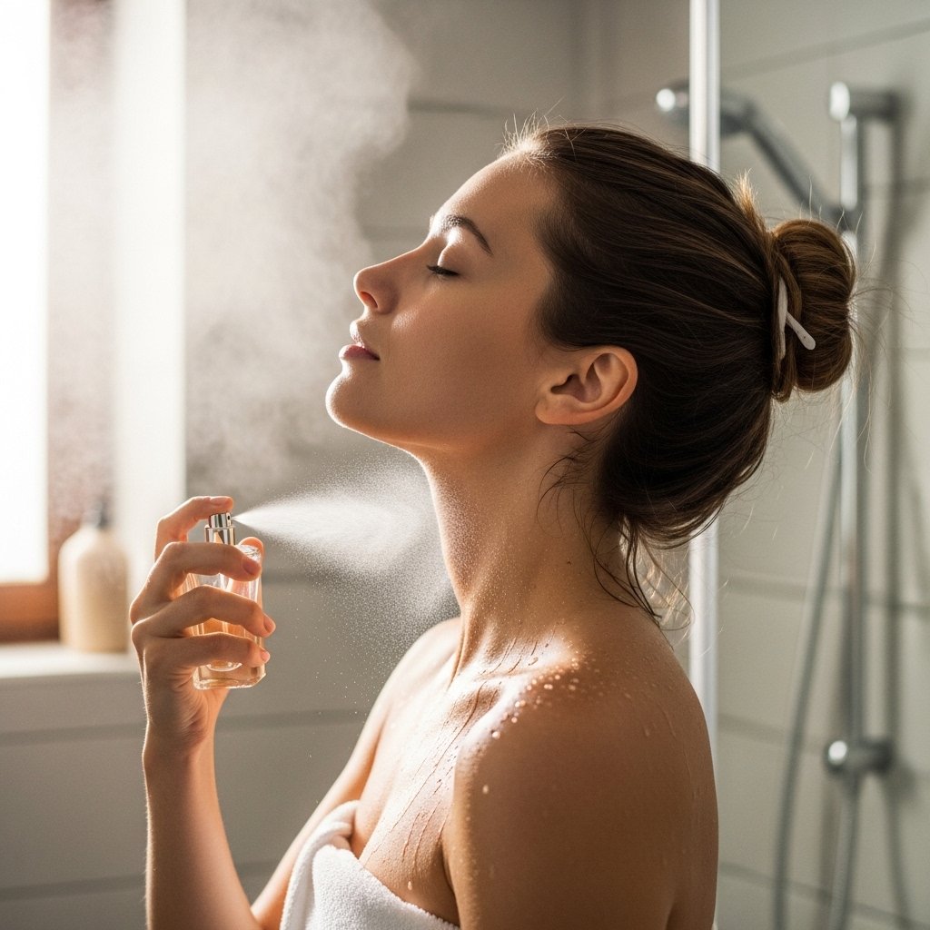 A shower may leave the skin a bit warm and damp, and this can allow the fragrance to stick. This could be the time to apply perfume to enable it to be absorbed more naturally into the skin surface.