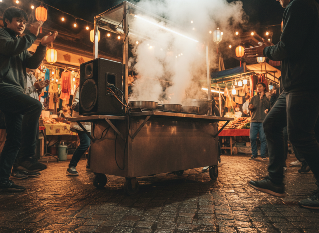 Carts steam chaat where speakers boom hooks crowds tap feet buy. Still, rains shield tunes cut fog clear. Also, kids dance plates wait bites hot. Then evenings pack stalls songs trail fade. Ownership streets music sells sizzle own. Daily hustles beats pulse life.